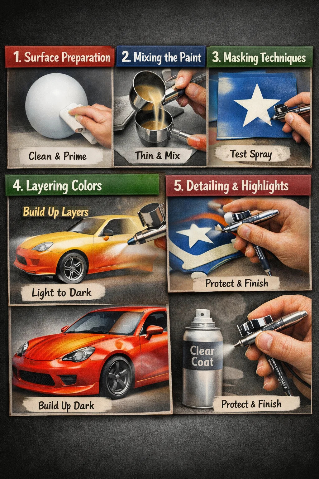 Aqui estão as principais etapas para concluir um aerógrafo pintura: