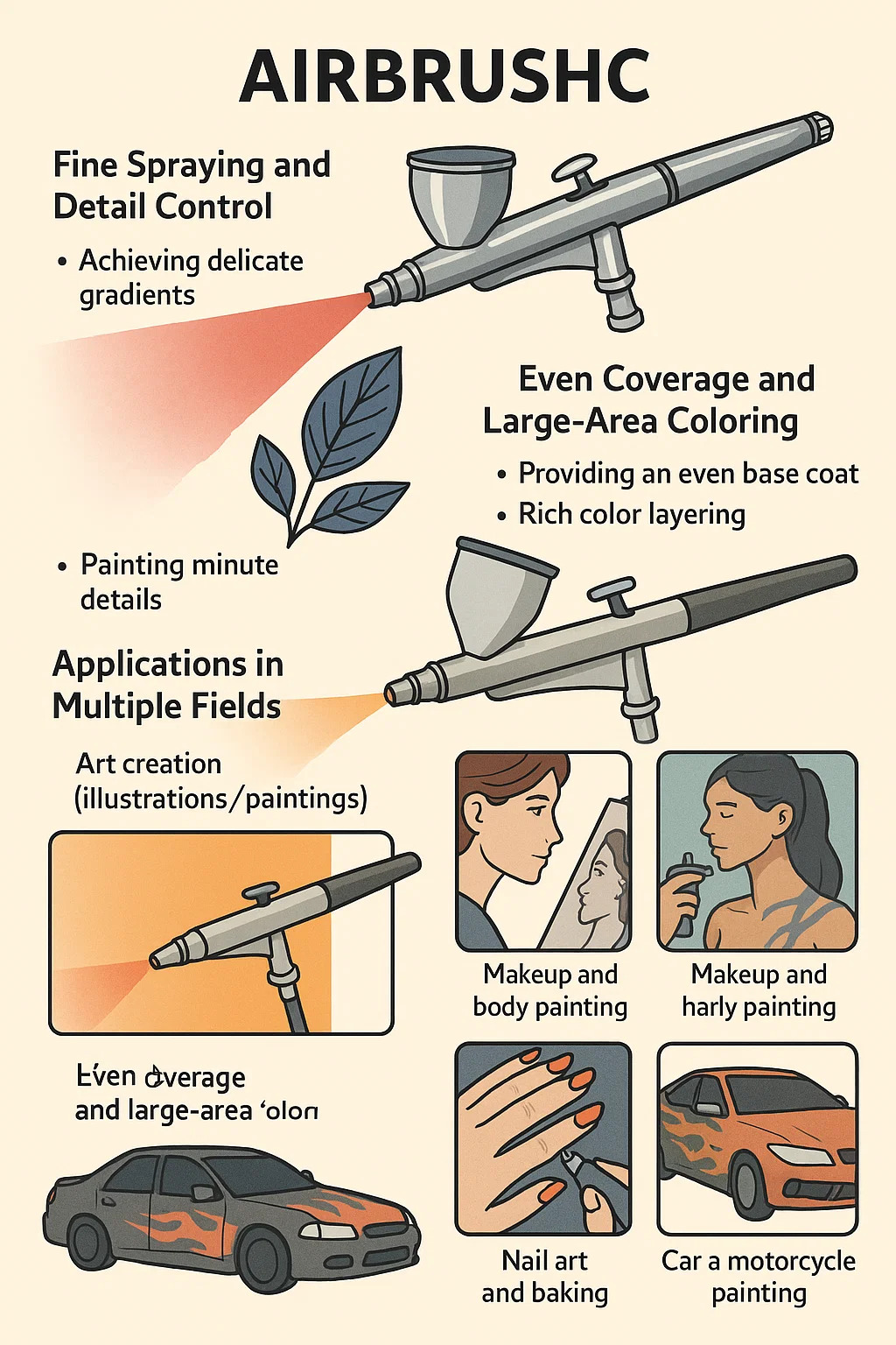 Os aerógrafos têm uma ampla gama de aplicações, incluindo as seguintes áreas principais: